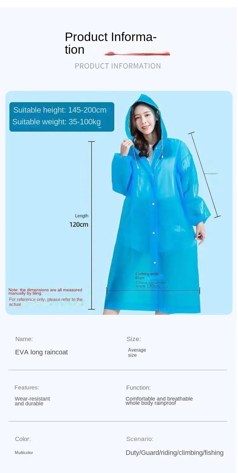 2.Thickened material :The thickened material of this raincoat makes it durable and resistant to wear and tear.