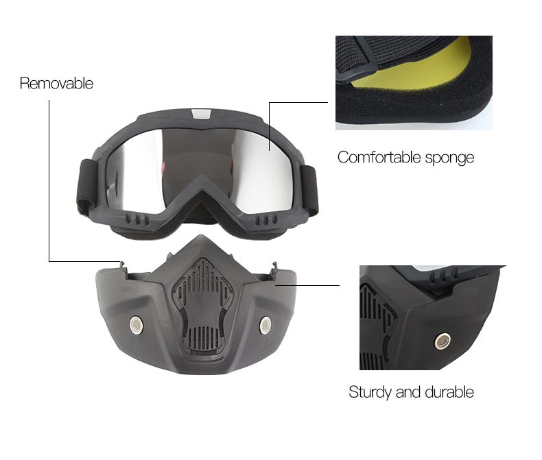• Windproof design :The mask goggle’s windproof design ensures that your eyes are protected from the wind while riding a motorcycle or engaging in outdoor sports.