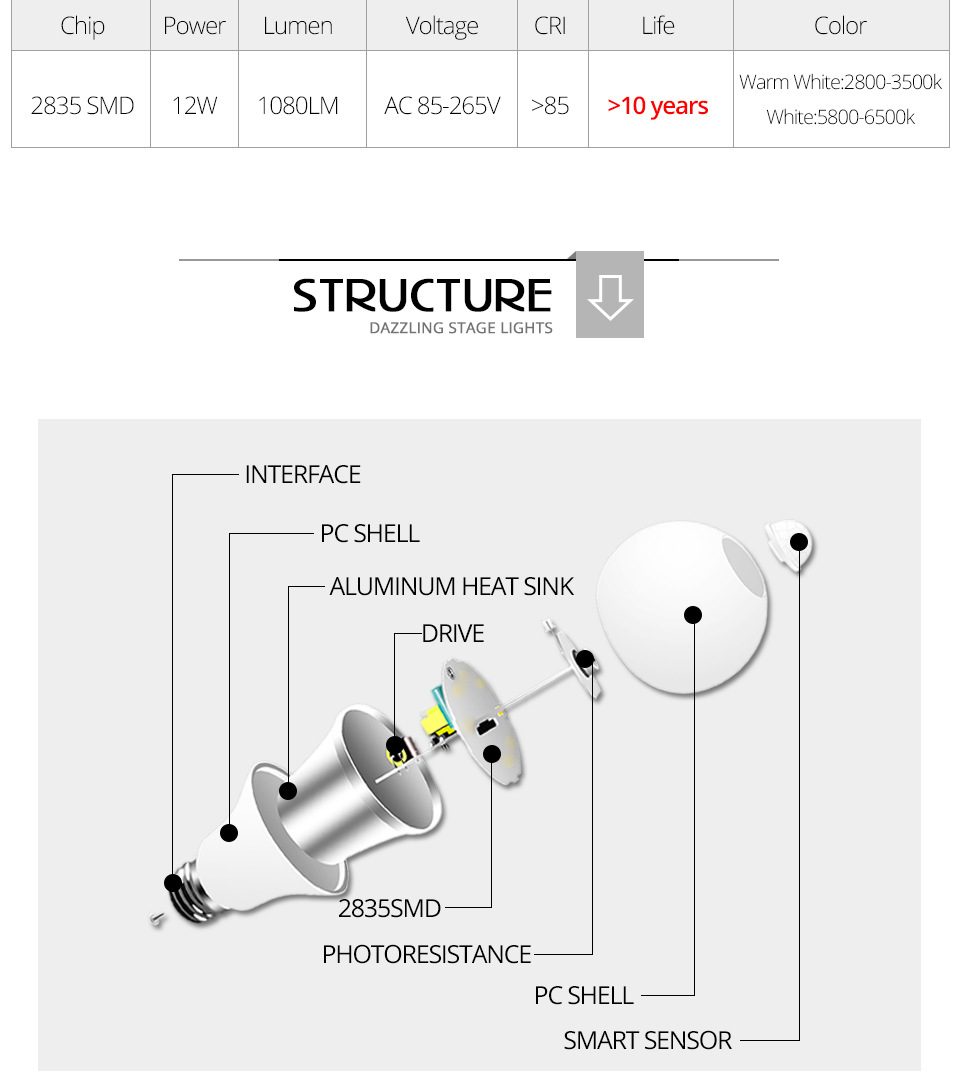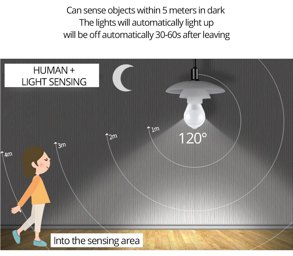 Specifications of E27 LED Bulb PIR Motion Sensor 110V 220V 12W 15W 18W Dusk Dawn LED Light Lamps Spotlights Night Light For Home Stair Hallway