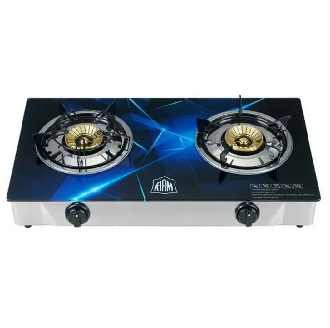 Kiam Gas Stove Stainless Steel Glass Panel Double Burner/Duble Chula-G-46 LPG Multicolor-1 Piece