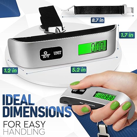 - Portable luggage scale: The baggage weight scale comes with strap and durable steel hook convenient for suitcase and packages. With the our digital scale hook your suitcase for instant weight.
