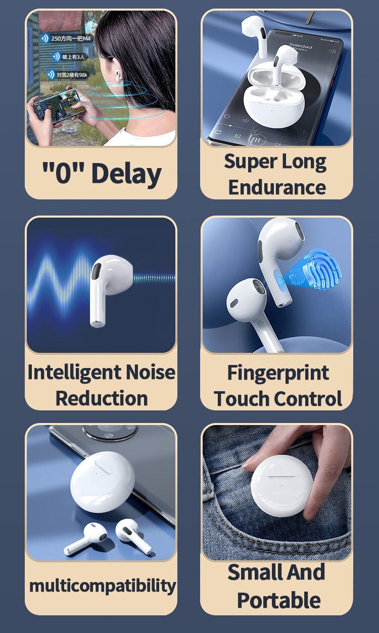 - PRO 6 Wireless Bluetooth Headset 5.0 Bluetooth Protocol Earplug Type Strong Endurance Gaming Competitive Headphones TWS Running