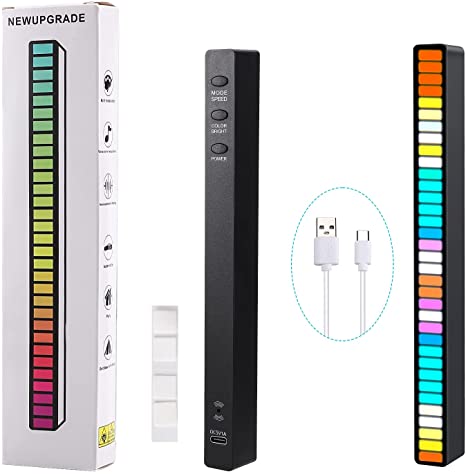 - Colorful Visual Effect: Different from traditional sound controlled light, this sound sensitive music built-in 32 RGB lamp beads, 8 colors display mode and 5 levels adjustable speed available. You can adjust it freely and create a funny music visual effect.