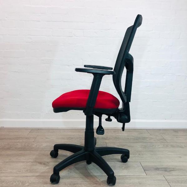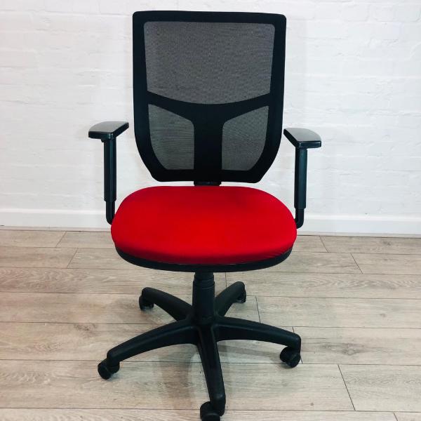 Senator Mesh Office Chair From quality British manufacturer Senator Fully Adjustable Operator / Task Chair Red FabricSeat Black mesh back Adjustable armrests Adjustable back height Forward tilt Adjustable seat height Swive...